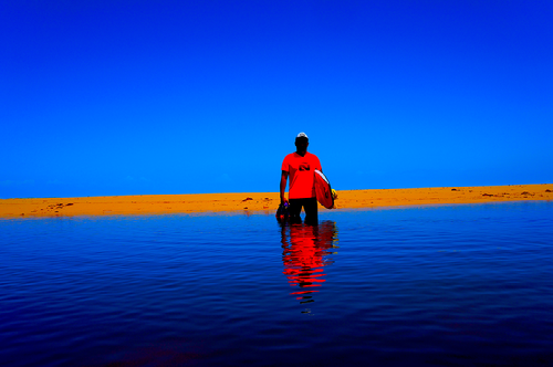 No vamos a negar nada, estábamos aterrados, sí era el paraíso, pero las olas eran enormes, y como las mareas eran intermedias podías correr todo el día, sin canal, tenías que calcular muy bien cuando entrar, y cuando correr una bomba. Esa sesión me recordaba a Perú y Chile, los días grandes de Chilca y Arica, el Pacífico rugía como nunca en aguas menos frías, azules y con palmeras al fondo.